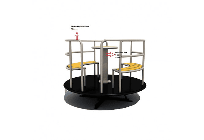 El Carrusel fue Diseñado con Sistema de Anclaje para Superficies Blandas mediante Poyos de Cemento ( Si requiere que este Producto sea con Sistema de Anclaje para Loza, deberá pedirlo al momento de hacer su Compra.( Especificar si la Instalación será en Tierra o Cemento)..