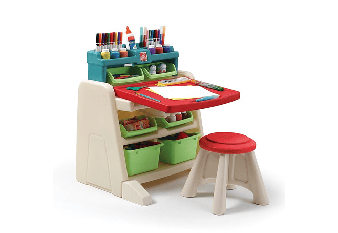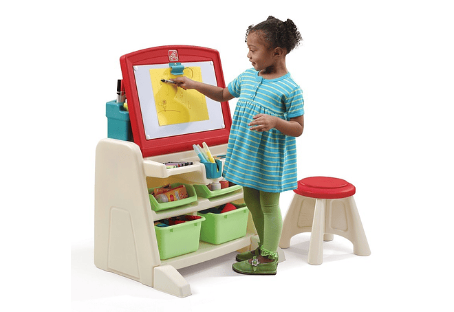 Su Diseño Dual permite utilizarlo como Escritorio o Atril para Pintar/Dibujar. El Atril posee con una superficie Tipo Pizarra para dibujar con Plumones Borrables.