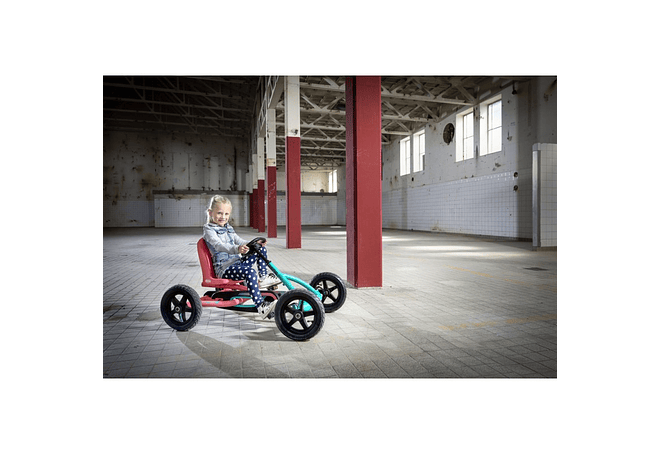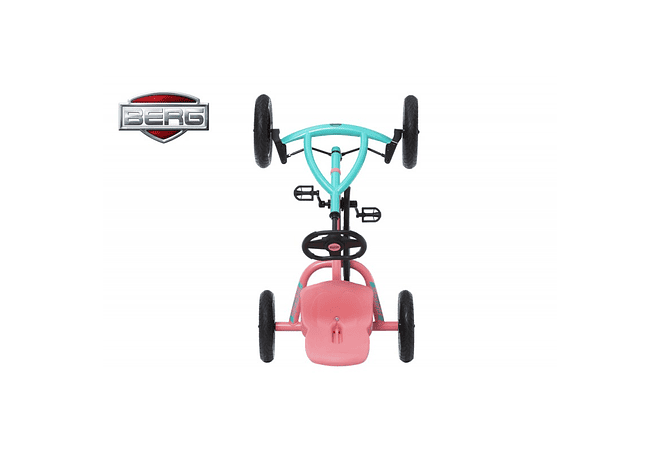 Con este Fabuloso Coche o Go Kart a Pedales en Tonos Palo Rosa y Verde Agua de la Marca Holandesa Berg, jugar al Aire Libre es aún más Divertido ! En este Coche a Pedales vivirás las mejores Aventuras durante Años, pues el Asiento y el Volante son Ajustables. El Sistema BFR te permite Pedalear, Frenar y Retroceder con los Pedales.