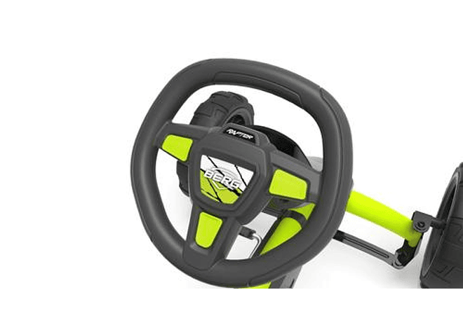 ¡Salirse del camino nunca fue tan divertido como con el Rebel! Los niños ya pueden conducir este llamativo Reppy a partir de 2,5 años. Los neumáticos EVA todoterreno de 10 pulgadas, el llamativo spoiler delantero, los muelles y el volante deportivo único, hacen que este coche de pedales acapare todas las miradas. El volante deportivo está equipado de forma estándar con un soundbox. Este soundbox tiene 4 tonos diferentes: frenar, tocar la bocina, arrancar el motor y acelerar.