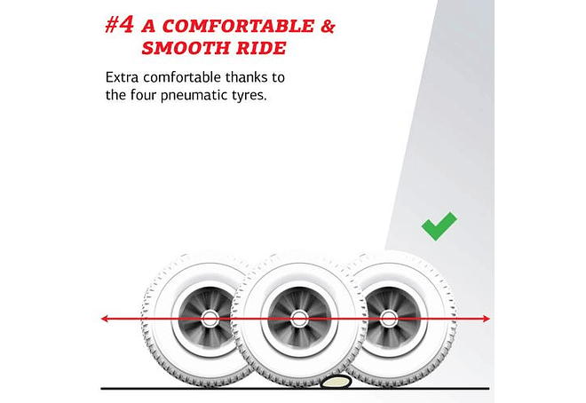 • Confort extra gracias a los neumáticos de aire.