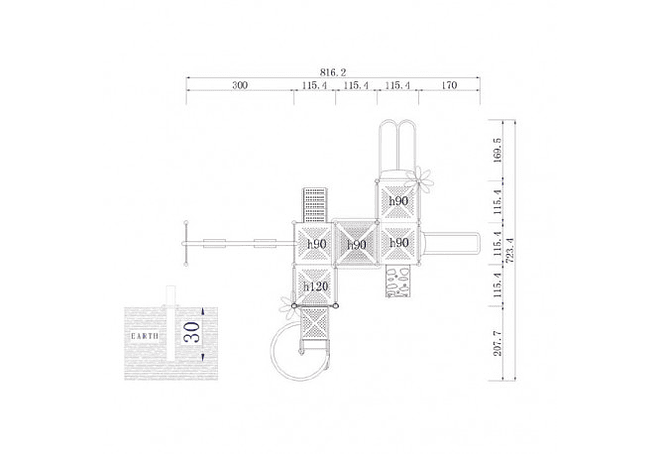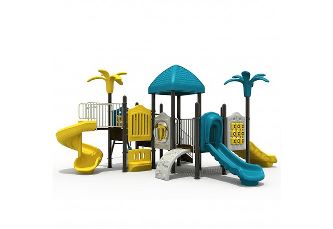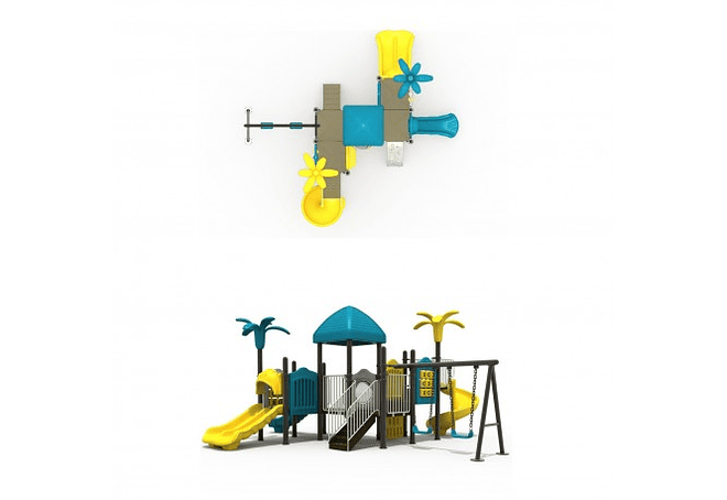 Incluye un Resbalin Espiral, un Resbalin Doble, un Resbalin Simple, 2 Escaleras de Acceso, 1 Juego de Gato, 2 Columpios, una Banqueta y 3 Tarimas.