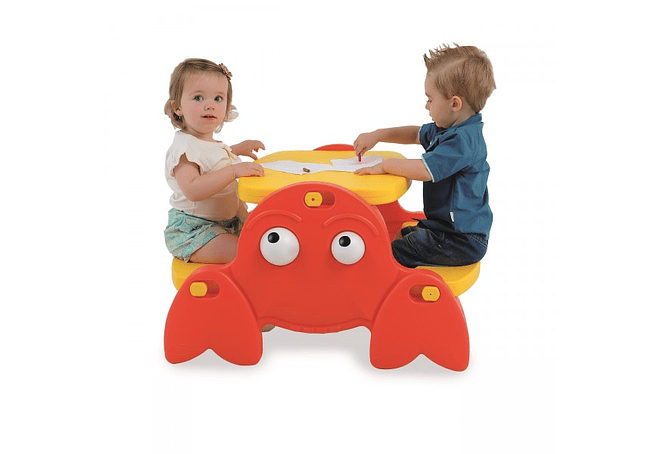 Colorida y segura, esta simpática mesa cangrejo soporta 4 niños.