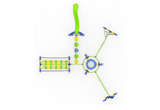 Juego Modular Deportivo conformado por 6 secciones diferentes las cuales complementan este increíble juego de plaza. Este juego está conformado por postes de acero galvanizado y sus partes plásticas son roto moldeadas (HDPE).