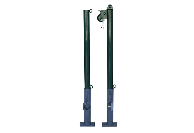 Parantes de tenis metálicos, con tensor con manivela. Botas de ensamble para su sitema de instalación remobible. Metal galvanizado y pintado.